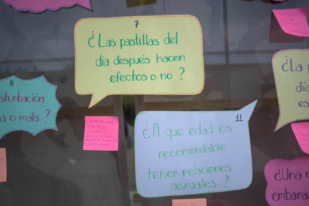 Otra de las actividades se llamó “la Ruta de Derechos”. Se trató  de una experiencia educativa, interactiva y territorial que funcionó como un circuito de aprendizaje con estaciones lúdicas, expositivas y participativas en torno a temas como: educación sexual integral, prevención de VIH, salud menstrual, violencia basada en género, consentimiento y autonomía corporal, riesgos de internet y sexualidad digital, embarazo de adolescentes y masculinidades.
