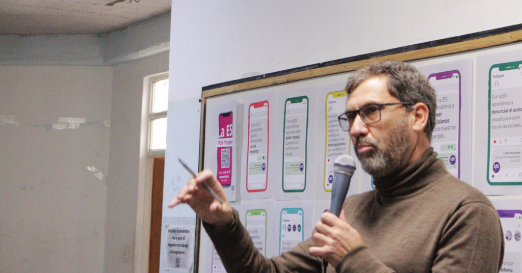 “¿Queremos tener fiscales, policías, armas, personas detenidas en las escuelas? Porque ese es el debate más profundo que se está dando, el ingreso del derecho penal en las secundarias”, con esta pregunta incisiva abrió su exposición Germán Martín en el conversatorio itinerante “La ESI nos mueve: buenas prácticas en escuelas secundarias de Neuquén” que se desarrolló el 24 de mayo en la ciudad de Neuquén. Se presentó no solo como fiscal sino como docente y activista por los derechos humanos de niños, niñas y adolescentes.