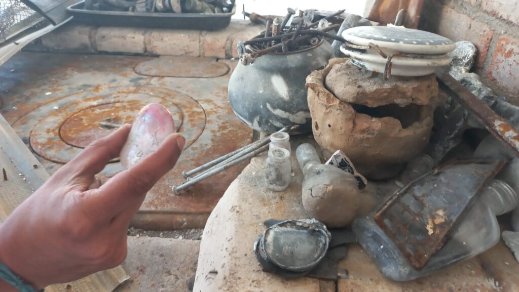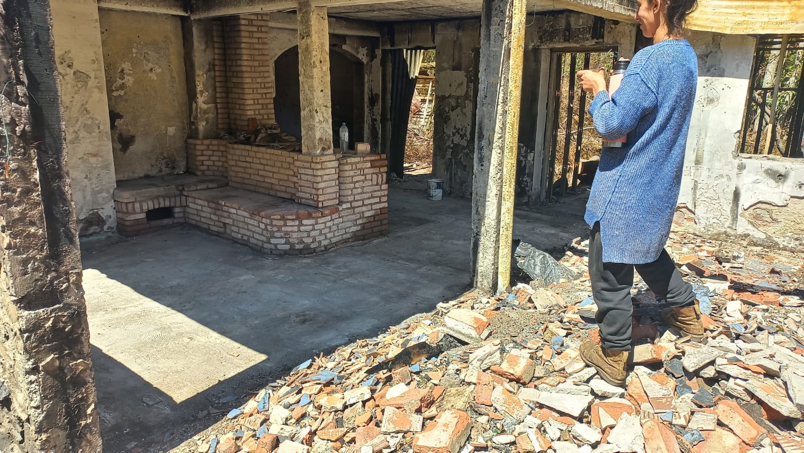 De la “casa madre”, como le llama Rocío a la casa central de la chacra, donde vivieron durante los primeros años y luego la transformaron en un estudio audiovisual para las residencias de artistas que viajaban hasta allí a experimentar con la fusión del arte, tecnología y naturaleza, sólo quedan escombros. Paredes quemadas. Una escalera que ya no lleva a ninguna parte. Y objetos ordenados a un costado, como lentes de cámaras y chips quemados.