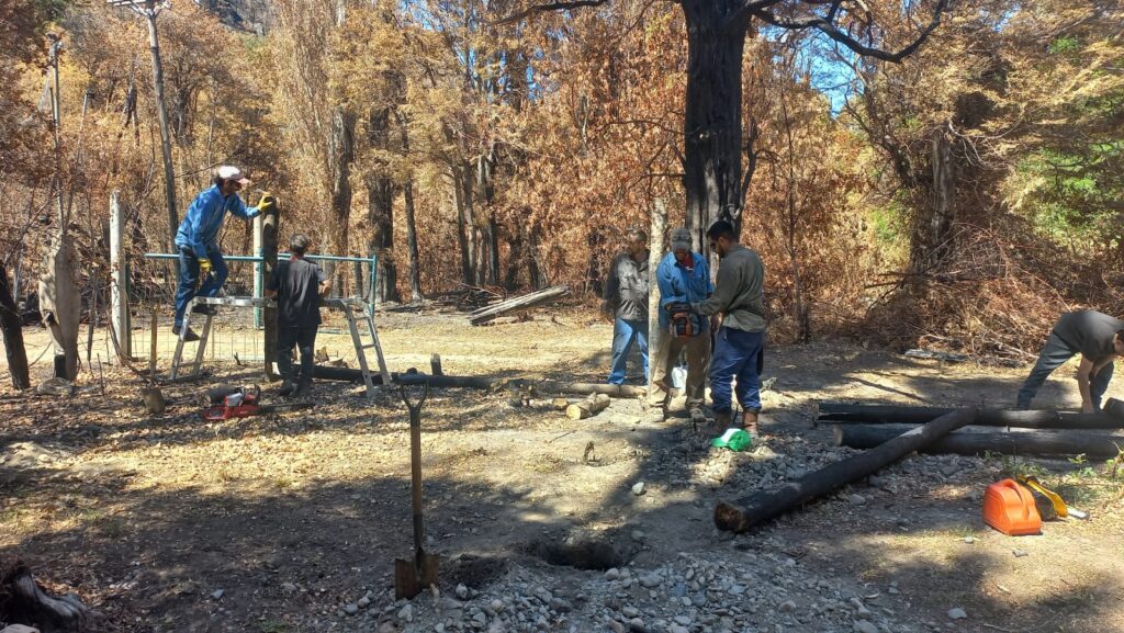 Hace unos días que pasó el incendio en la Comarca Andina de Chubut. En los noticieros y diarios del país, donde ocupó un lugar central, ya casi no se habla del tema. Pero en el territorio, las redes comunitarias siguen activas. A los costados de la Ruta 40 que une El Hoyo y Epuyén, especialmente los fines de semana, puede verse movimiento: gente cargando motosierras, bajando árboles quemados, levantando nuevas estructuras. Son las mingas. Del quechua mink’a, es una tradición ancestral de los pueblos originarios andinos, donde las personas se juntan para llevar adelante un trabajo colectivo y solidario para un bien común.