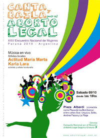 Este año, además, nos sumamos en el marco de la Campaña Nacional por el Derecho al Aborto Legal, Seguro y Gratuito a la organización de un festival para seguir reclamando por una ley que legalice y despenalice el aborto en nuestro país (sábado 19 hs. Plaza conocida como de los bomberos). Vamos a Cantar y a Bailar por el Aborto Legal, también para festejar las articulaciones y el activismo colectivo, para seguir exigiendo la libertad de nuestros cuerpos, de nuestros vientres y de nuestro derecho a decidir.