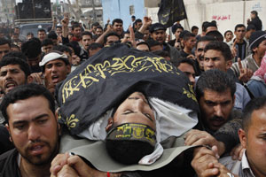 Foto 2: Entierro de un combatiente palestino que murió en un choque con tropas israelíes. Foto: AP/ Hatem Moussa