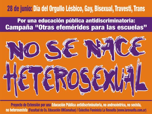 Por nuestra parte, trabajamos desde nuestro activismo y desde el Proyecto de Extensión: “Por una educación pública antidiscriminatoria, no androcéntrica, no sexista, no heterosexista” -entre otras cosas- para desmantelar el mito de la heterosexualidad obligatoria.